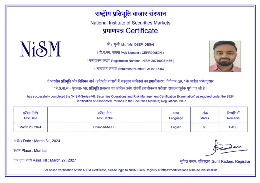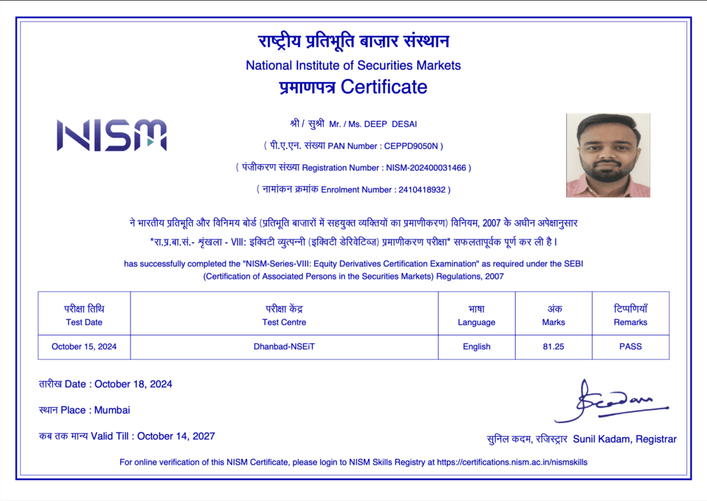 Motivated by his interest in investment and securities markets, Deep pursued a Bachelor’s degree in Financial Markets from Narsee Monjee College of Commerce & Economics, Mumbai. After completing his degree in 2018, he gained practical experience through a 6-month internship with a registered stock broking firm in Borivali, Mumbai.